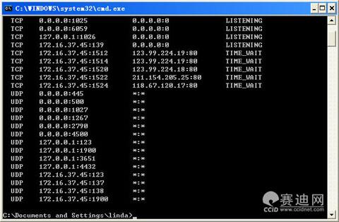一般一台个人用的系统在开机后最多只有137、138、139三个端口。若上网冲浪会有其他端口,这是本机与网上主机通讯时打开的,IE一般会打开连续的端口:1025,1026,1027等,QQ会打开4000、4001……等端口,我们可以使用netstat -an命令查看系统当前的端口状态。